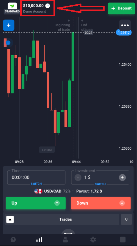 डेमो अकाउंट आपके लिए प्लेटफ़ॉर्म से परिचित होने, विभिन्न परिसंपत्तियों पर अपने ट्रेडिंग कौशल का अभ्यास करने और बिना किसी जोखिम के वास्तविक समय के चार्ट पर नए मैकेनिक्स आज़माने का एक उपकरण है।